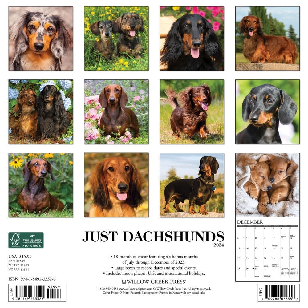 Just Dachshunds 2024 Wall Calendar
