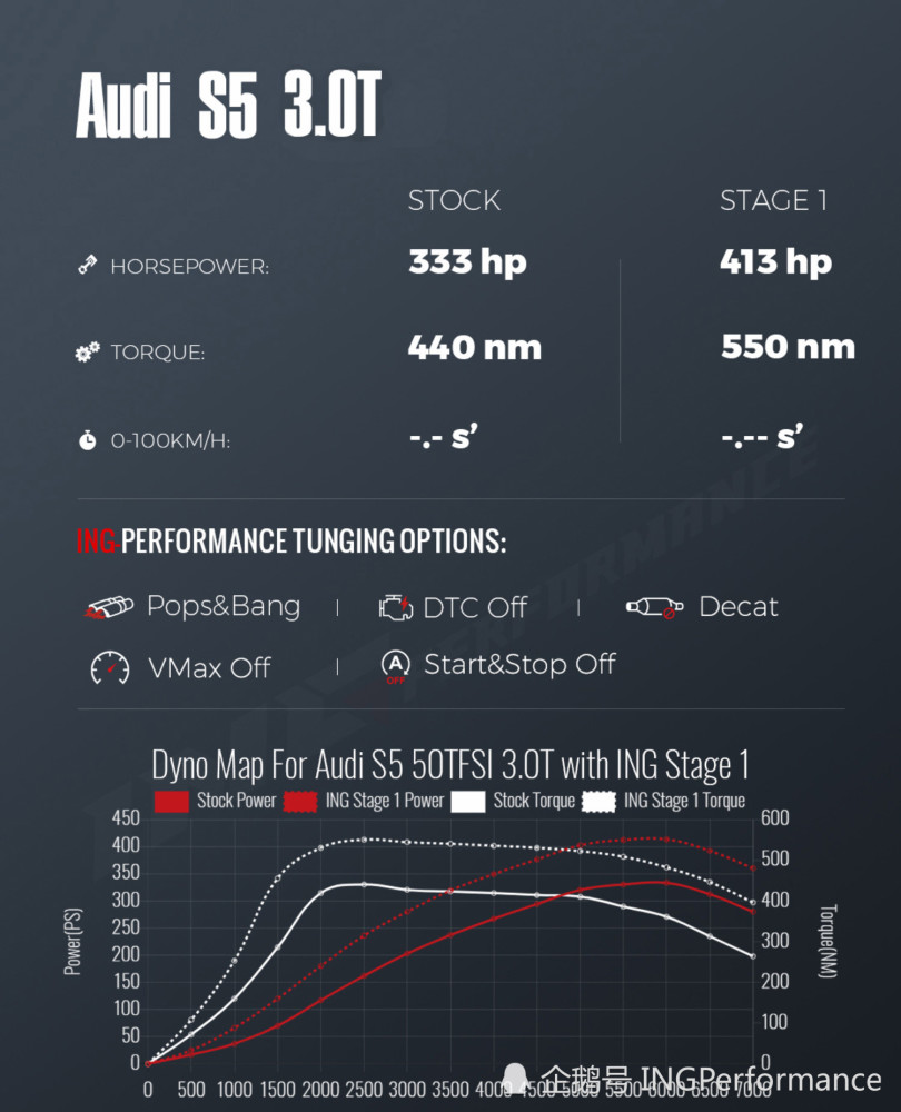 奥迪S5刷ECU升级,3.0T机增发动机潜能激活,ING特调一阶413匹改装作品玩车之家