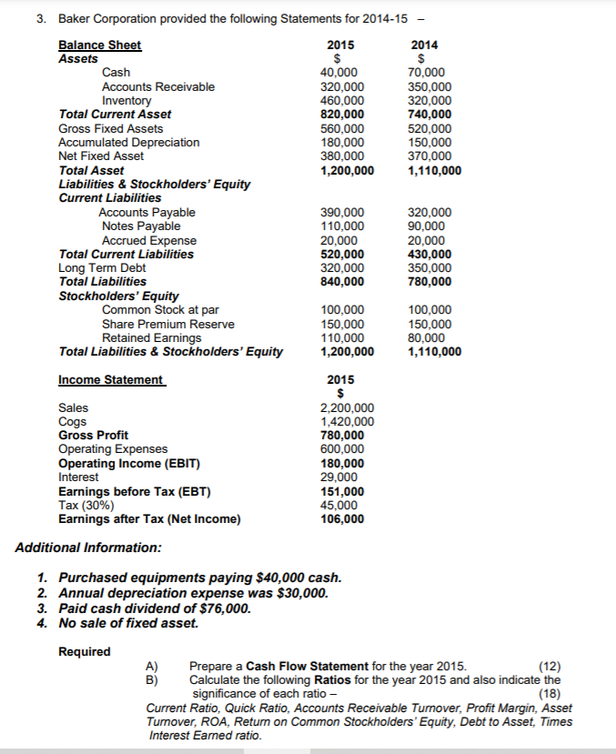 Solved 3. Baker Corporation provided the following