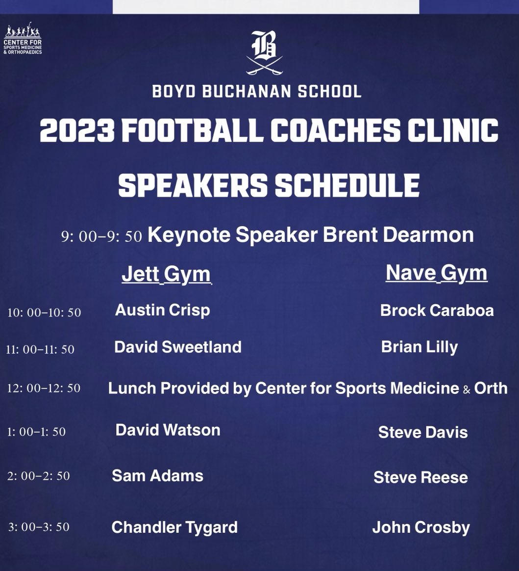 TnFCA on Twitter "Here is the Boyd Buchanan coaching clinic schedule