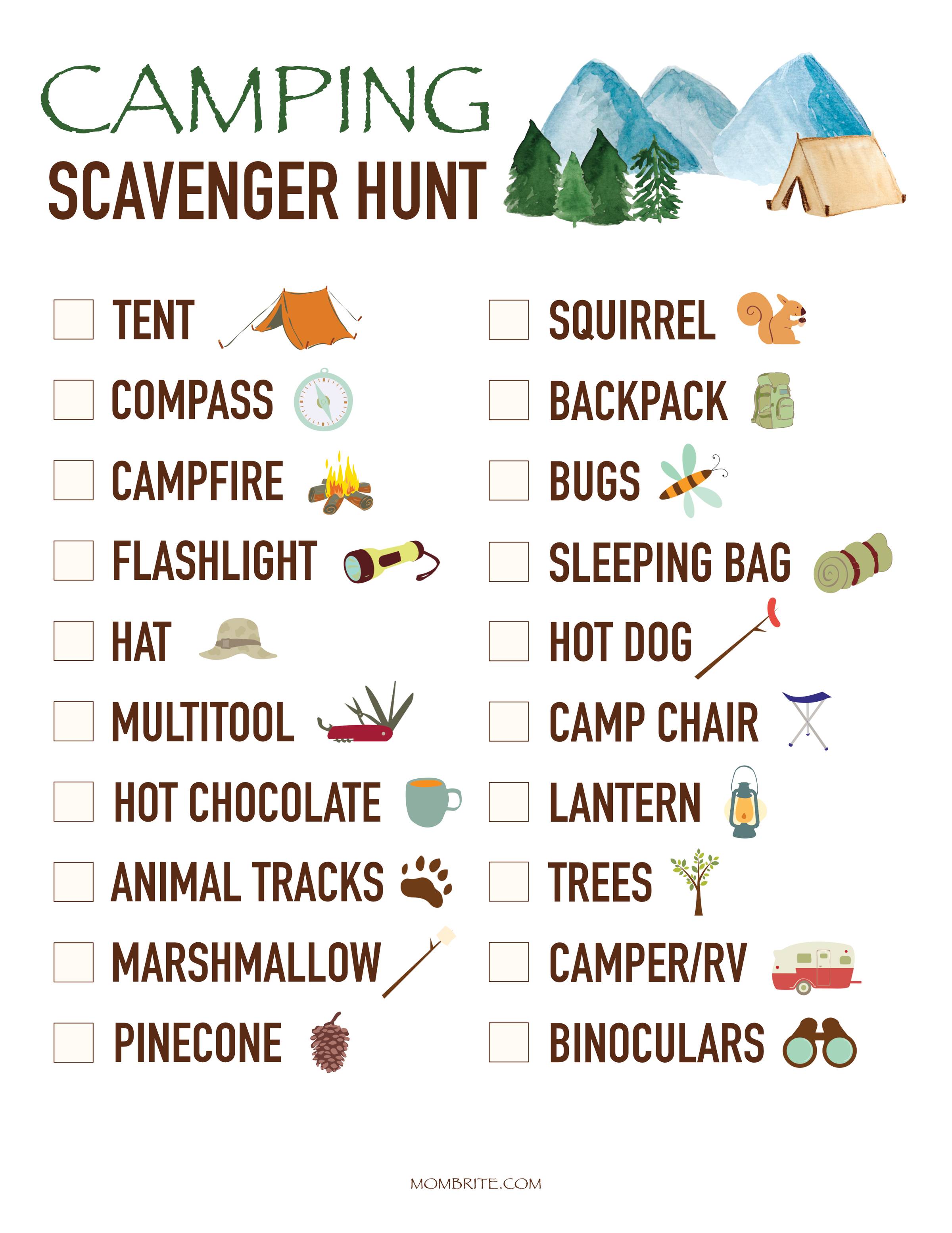 Web kids will enjoy exploring the state park or campground with this free printable camping scavenger hunt. There is so much to see around the campsite! More camping activities from kids activities. Scroll to the bottom of the page and add your email address to get the pdf file. Web grab your free camping printables.