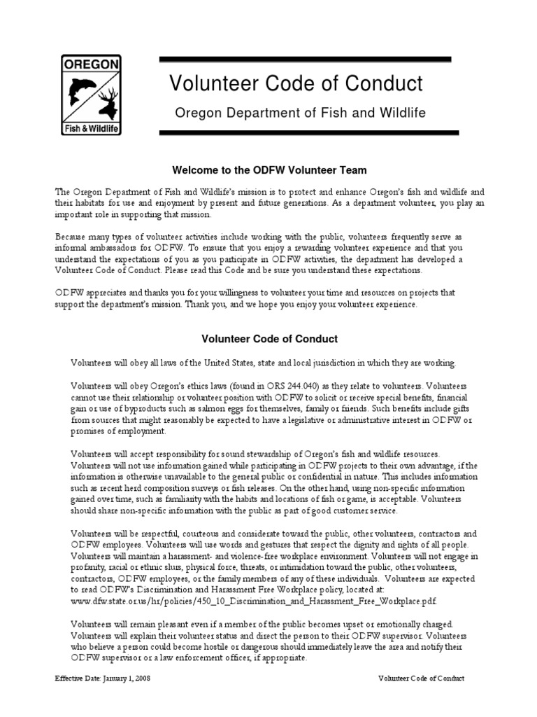 Code of Conduct Form Volunteer PDF Volunteering Harassment