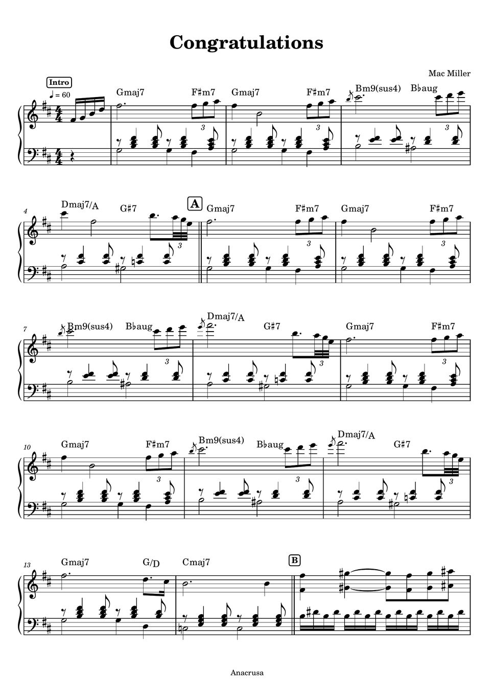Mac Miller Congratulations (Piano) Sheets by Anacrusa