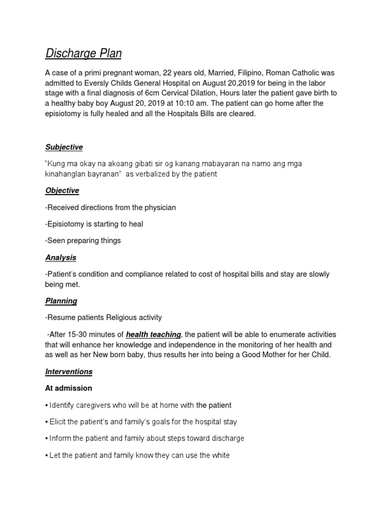 Discharge Plan Pregnancy Childbirth