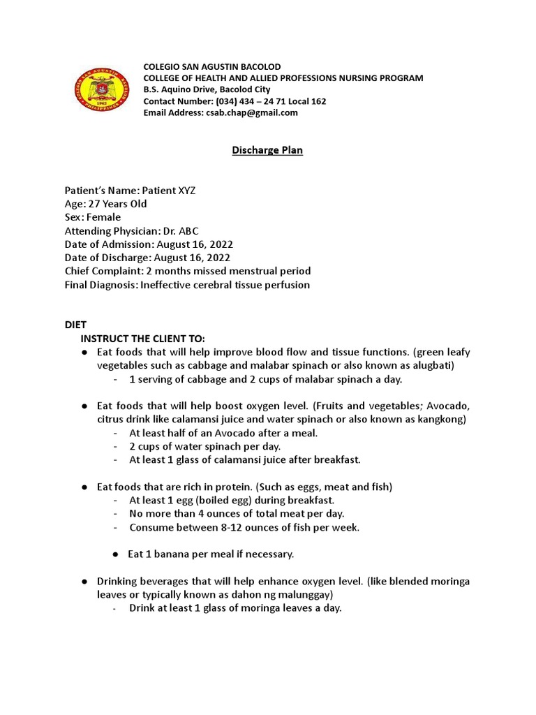 Sample Discharge Plan