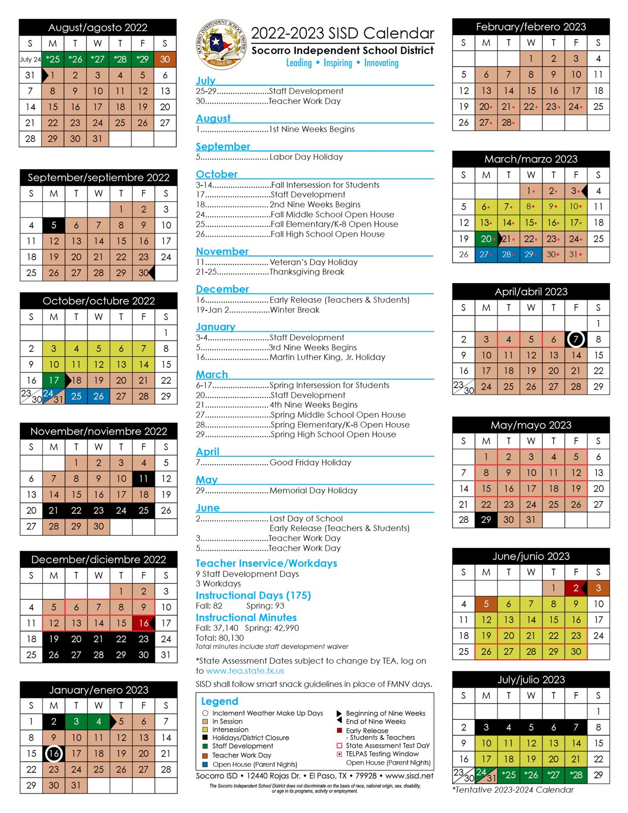 Socorro Independent School District Calendars El Paso, TX