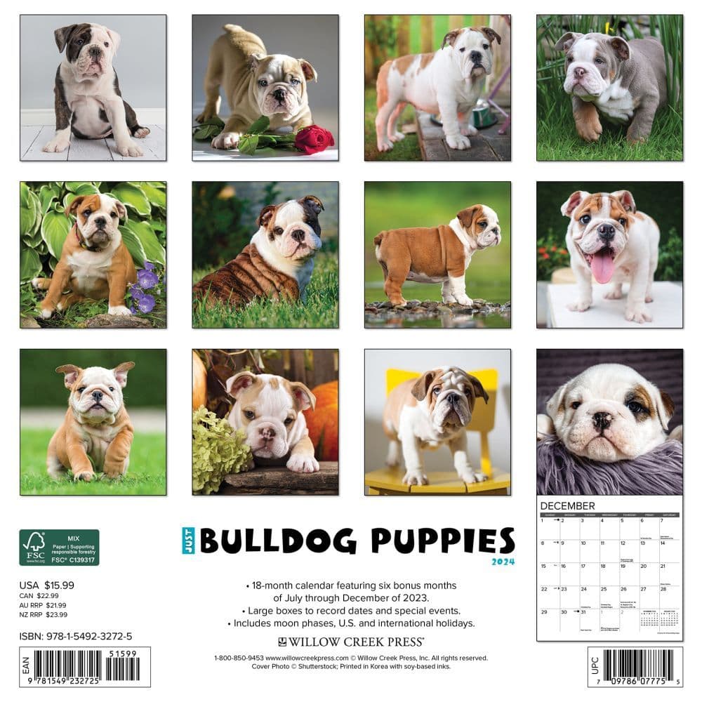 Bulldog Puppies 2024 Wall Calendar