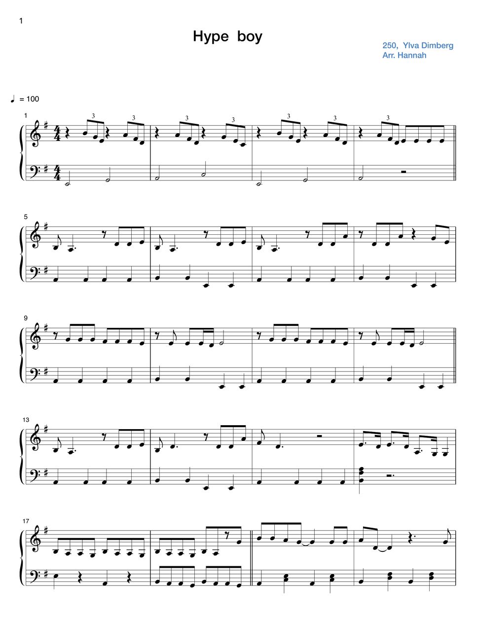 NewJeans Hype boy (쉬운 악보) Partition musicale by Hannah