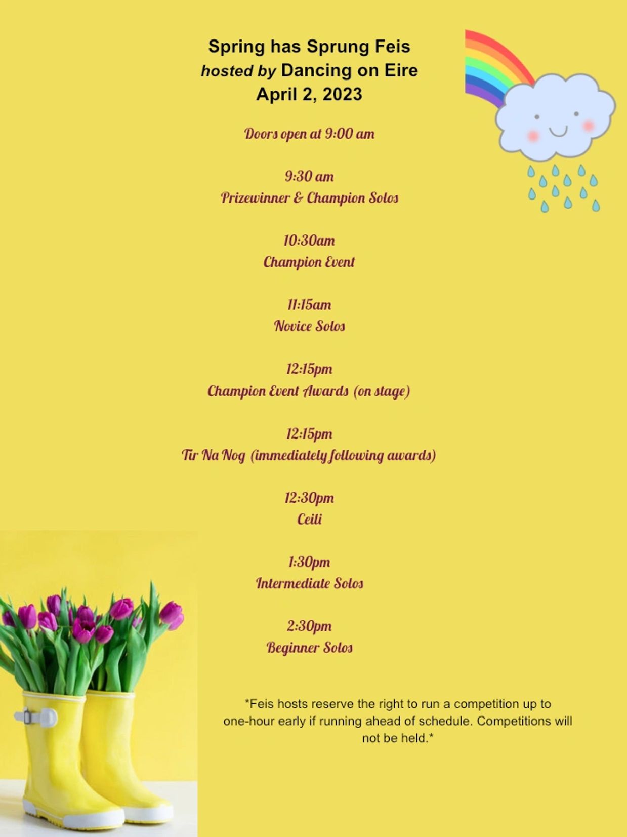 2023 Feis Schedule