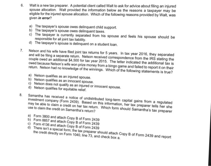 Solved 6 Walt is a new tax preparer. A potential client