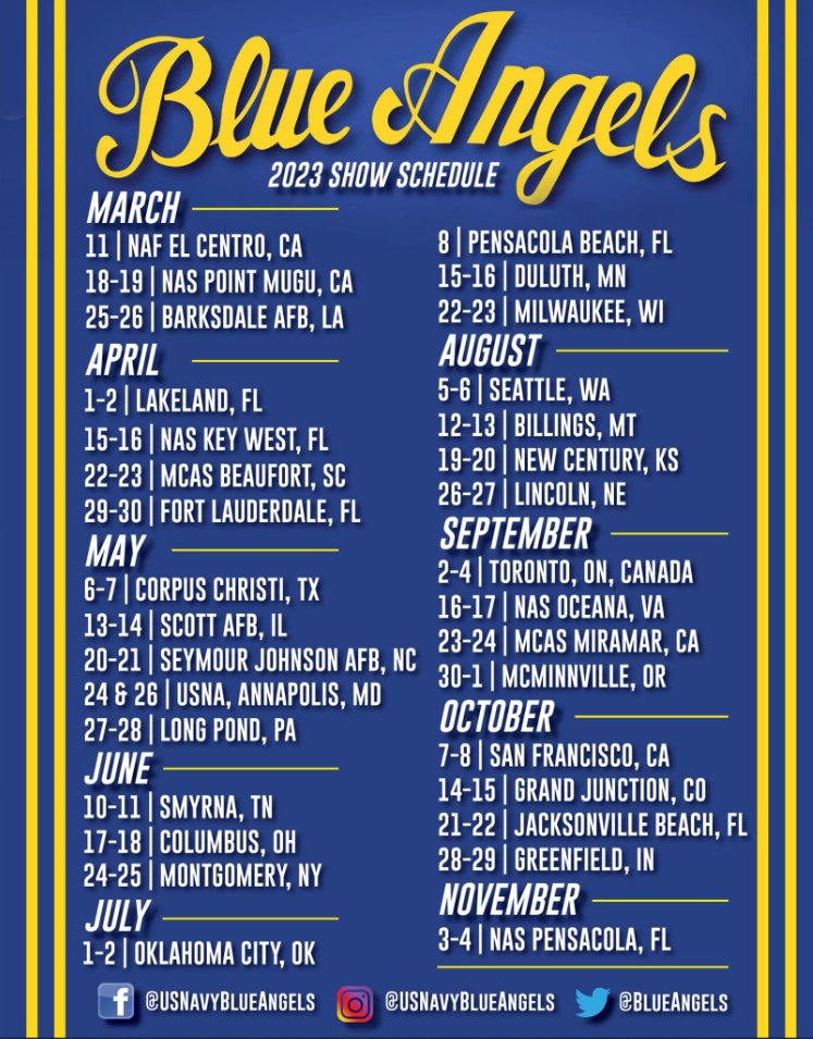 For those looking to go to airshows in 2023, here are the schedules as
