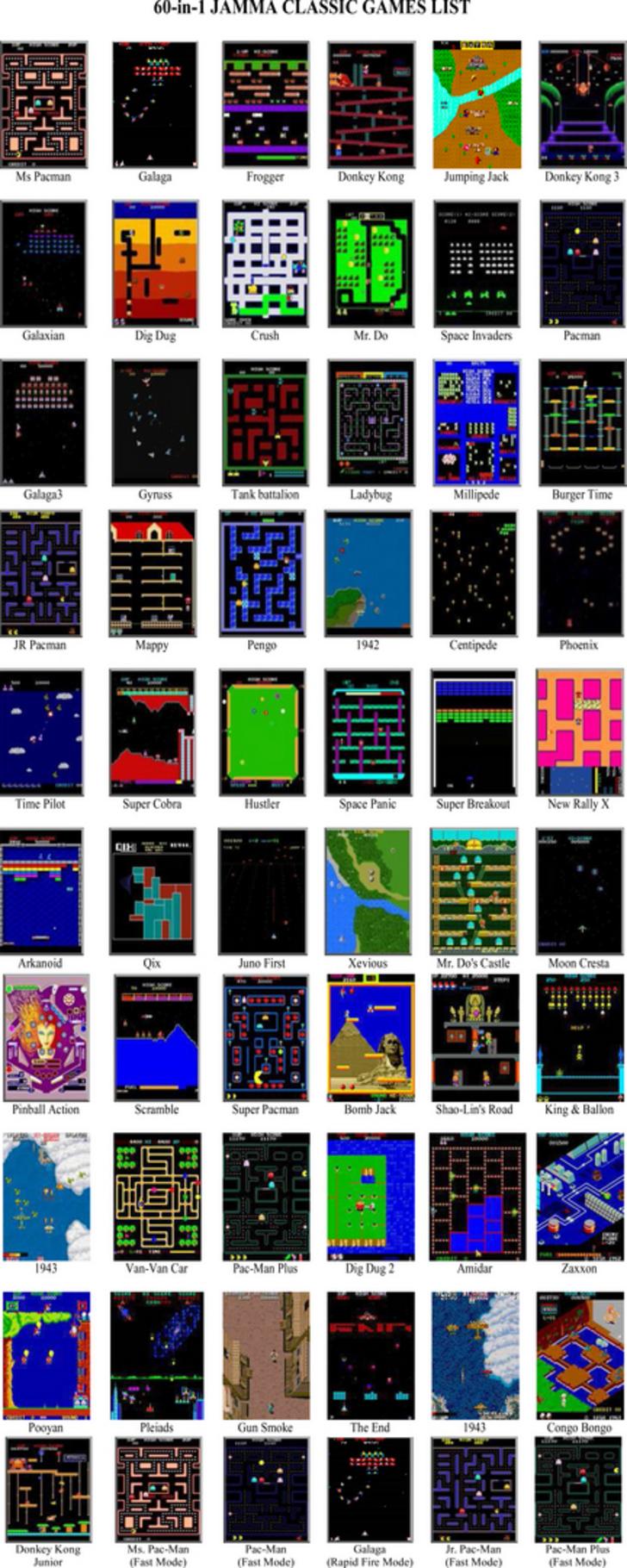 Web blee classical arcade video game 60 in 1 pcb jamma board for cga vga output. 60 in 1 arcade game board. Web 60 in 1 multicade arcade game list 1. (saves high scores) user manual; This jamma board has them all!