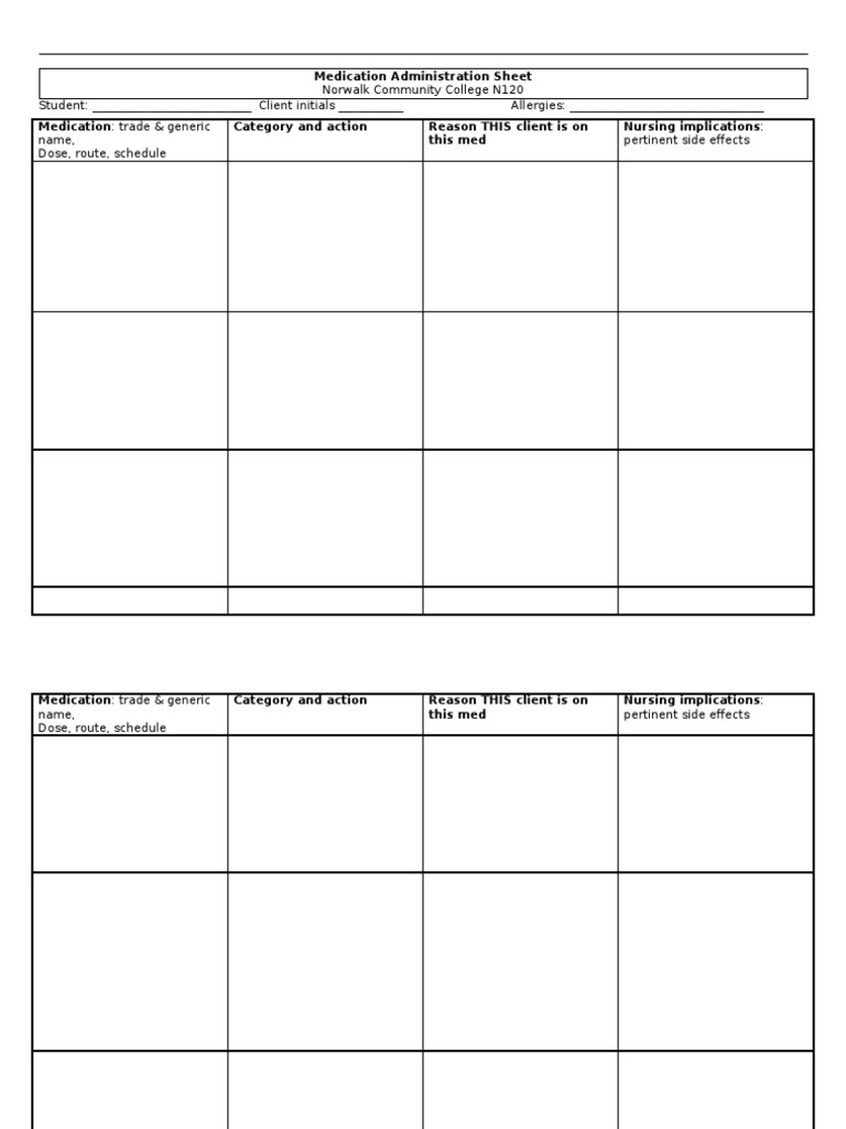 Blank Medication Adminstration Sheet