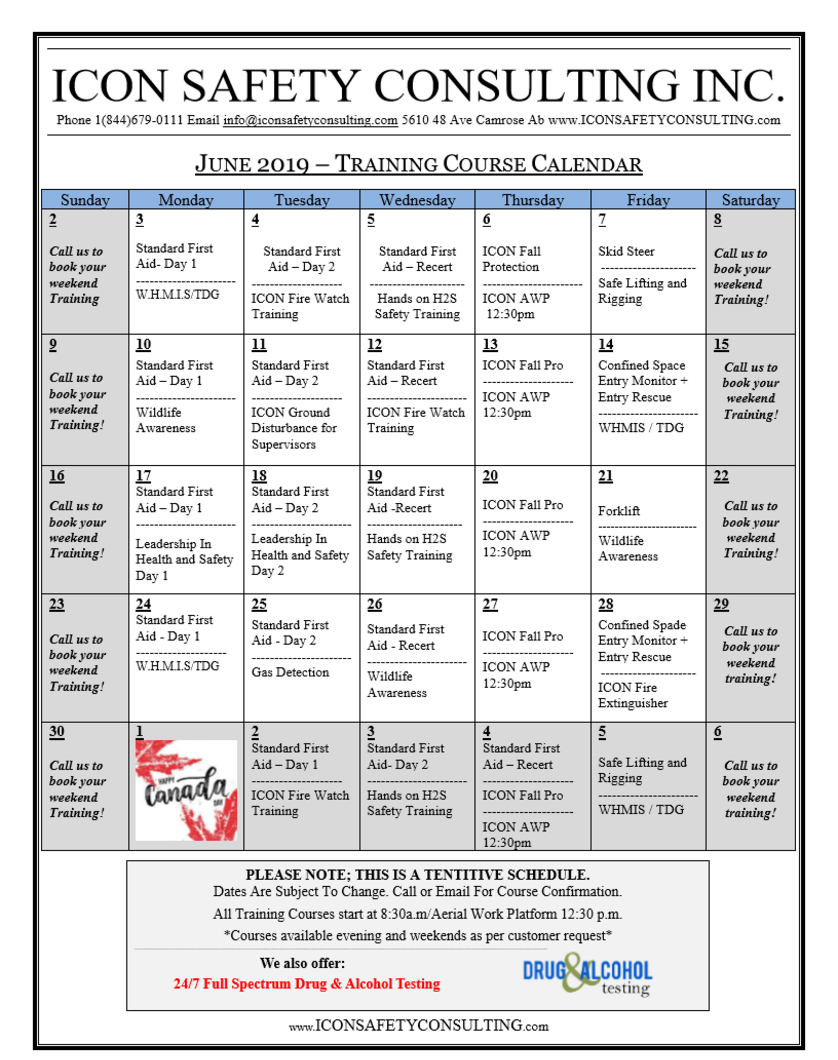Monthly Safety Training Calendar ICON SAFETY CONSULTING INC.®