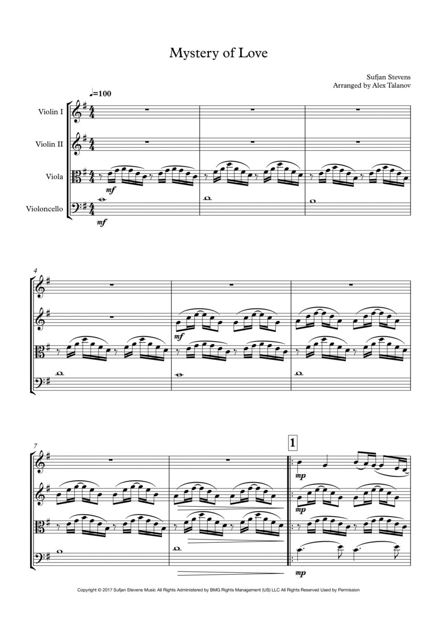 Mystery Of Love Sheet Music Sufjan Stevens String Quartet