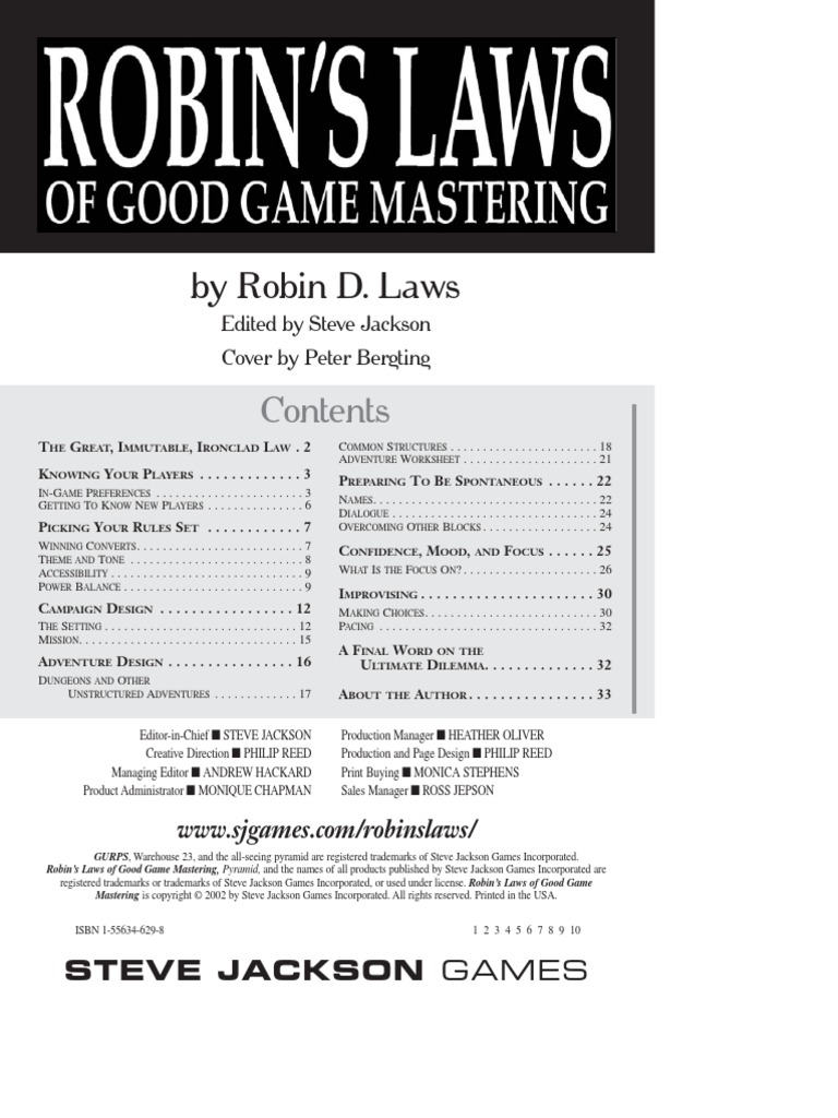 Robin's laws of good game mastering by steven jackson games is a 32 page guide. Robin’s laws of good game mastering. Web robin's laws of good game mastering: To say that robin’s laws of good game mastering has been. Laws' collection of game mastering wisdom seems at first deceptively slim.