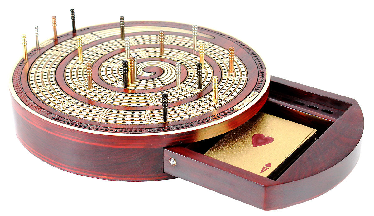 Cribbage Board Spiral Design Round Shape 4 Tracks Bloodwood Maple With
