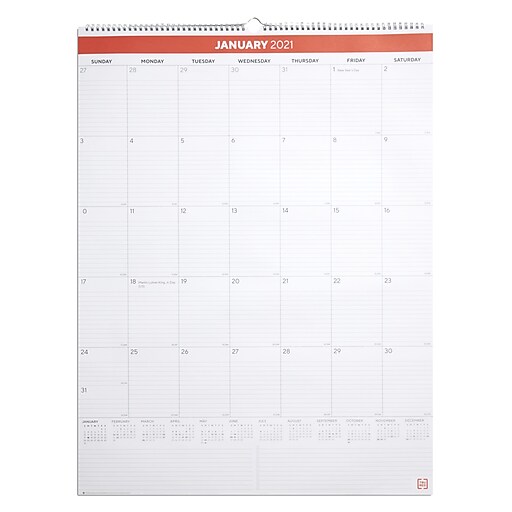 Staples 2020 32" x 48" Wall Calendar Red (5391120) 24374911 Walmart