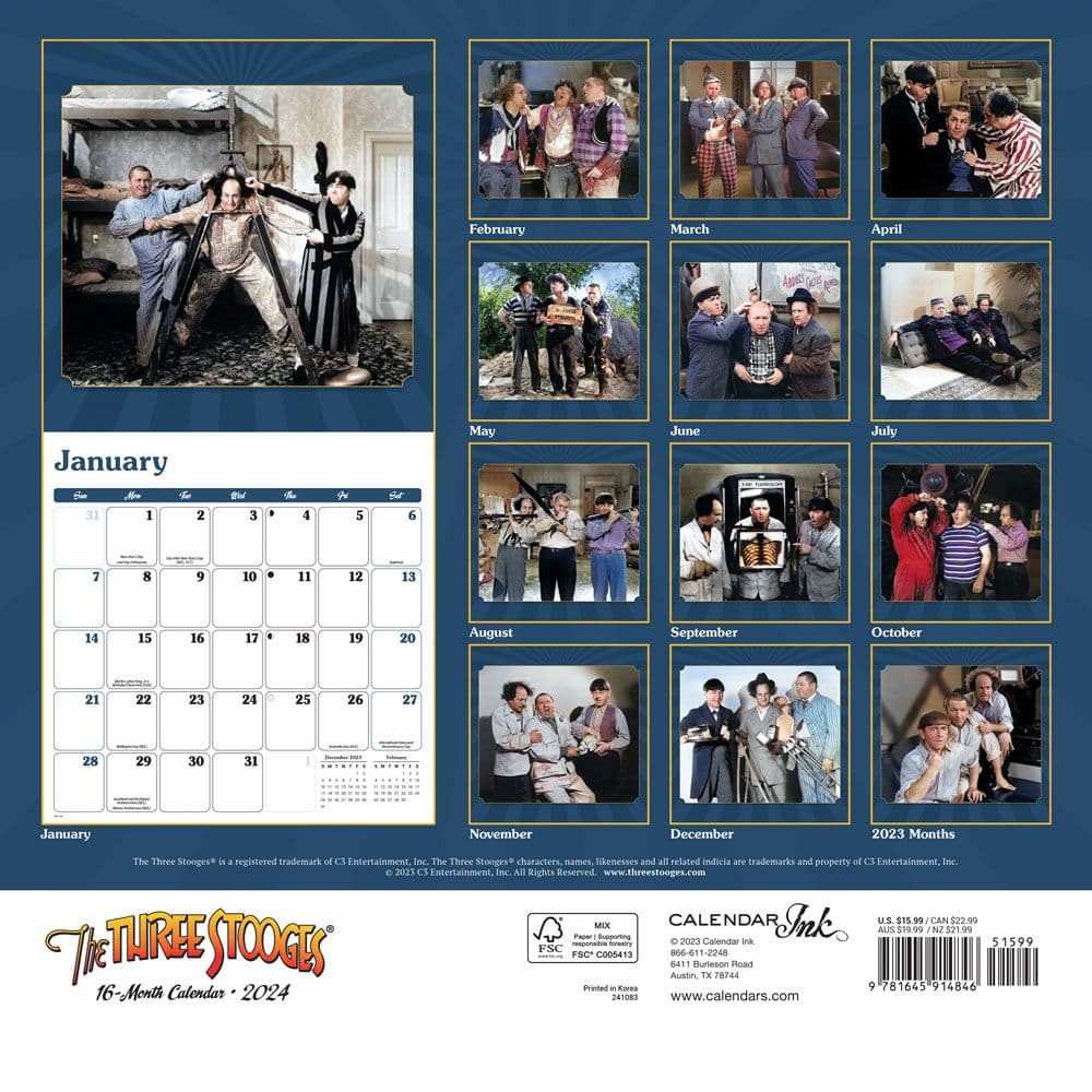 Three Stooges 2024 Wall Calendar