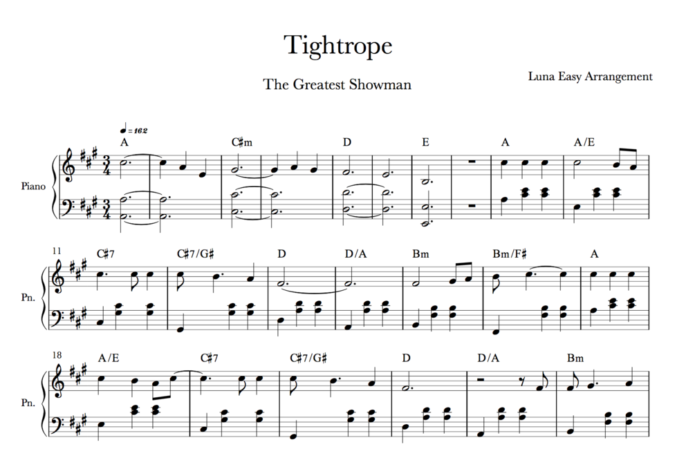 Web download tightrope sheet music pdf from the greatest showman. This was based on genexel music's arrangement and i just simplified it a bit. Web tightrope from the greatest showman. “tightrope sheet music pdf from the greatest showman” for piano sheet music, scoring piano / vocal /. Sheet music arranged for piano/vocal/guitar in a major (transposable).