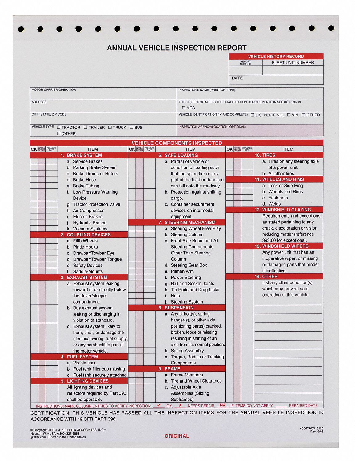 JJ KELLER Vehicle Inspection Report, PK10 52VR193128 Grainger