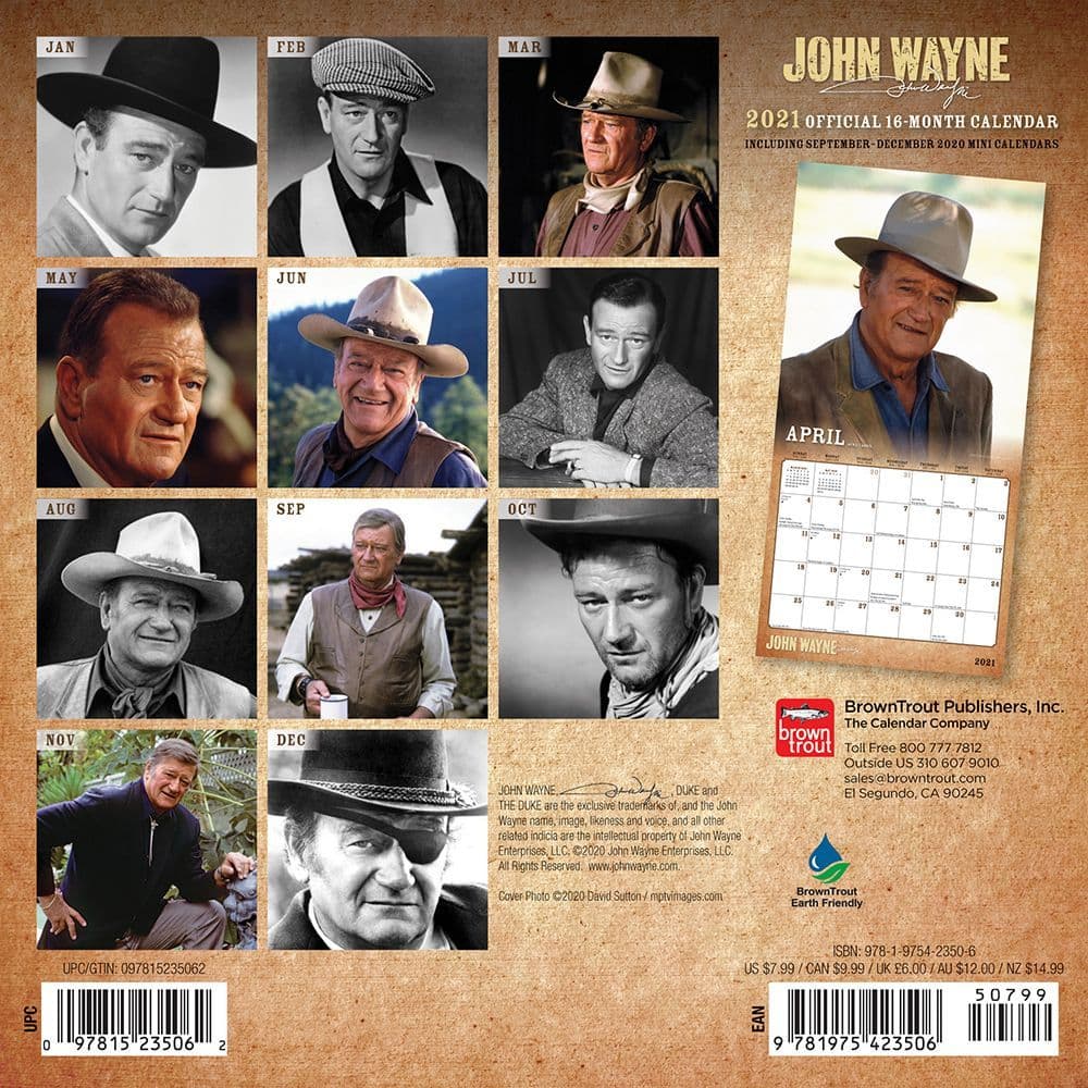 John Wayne Calendar 2020 Set Deluxe 2020 John Wayne Wall Calendar